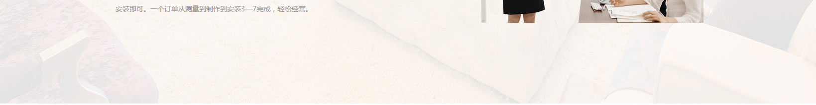從店面前期,片區(qū)經(jīng)理到您店面做店面定位市場分析、布料分析,設(shè)計師為您量身設(shè)計店面布局,到店面開業(yè)培訓師到店培訓導購店長的銷售、安裝、搭配。全程跟蹤服務更方便更專業(yè)。